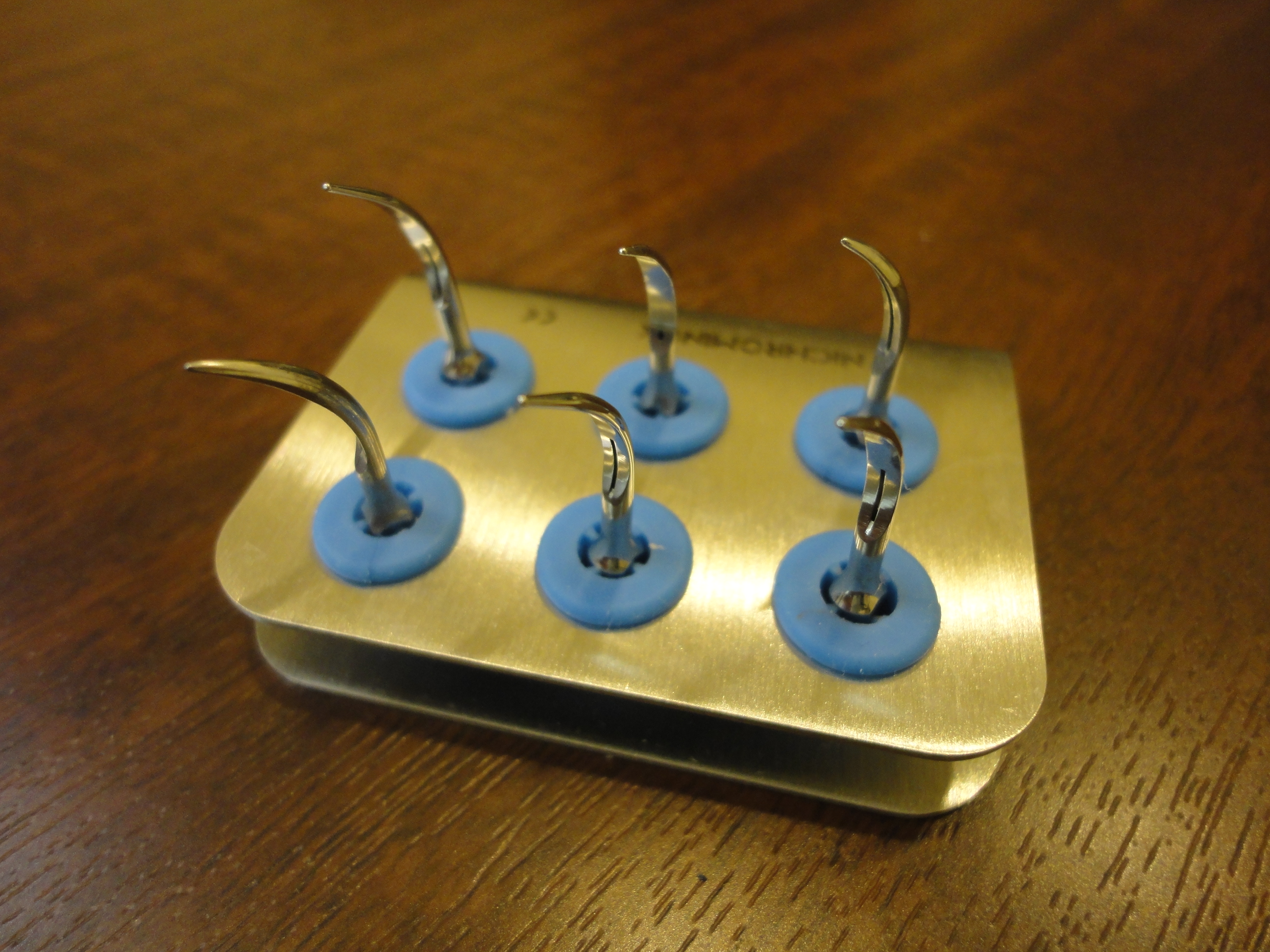 クリーニングに使う器具の一つに超音波スケーラーというDSC_1232右から2番目が超音波スケーラー(先が尖っていて危ないのでカバーが付いています)実際は、カバーを外して使いますのでスライド80こんな感じです。 そこで清潔・不潔を徹底している黒田クリスタル歯科 吉祥寺では医院理念【HPの院長挨拶の一文にある『清潔、不潔を徹底し、できるだけ使い捨てのディスポーザブルを使用し、使い捨てできない物は1回1回滅菌し清潔な環境での診療をいたします。』】のように、この超音波スケーラーの先端のチップも患者さんごとに毎回、滅菌するために交換しております。DSC02048チップの先端はこのようにストックしており、30個ほど用意してます。ちなみにこのチップだけでも一つ数千円しますので、患者さんごとにこのチップを交換している歯科医院は少ないかと思います。
