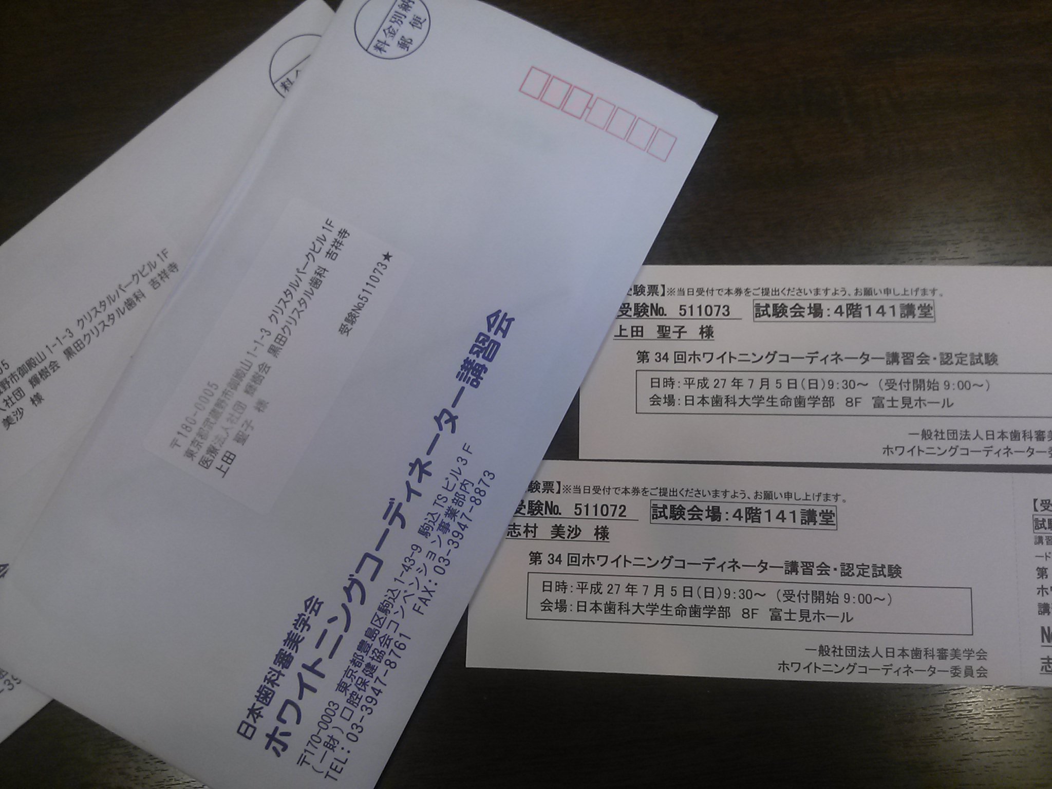 約10日前 黒田クリスタル歯科 吉祥寺の歯科衛生士2名が歯科審美学会のホワイトニングコーディネーターの講習と認定試験を受けに行って参りました。