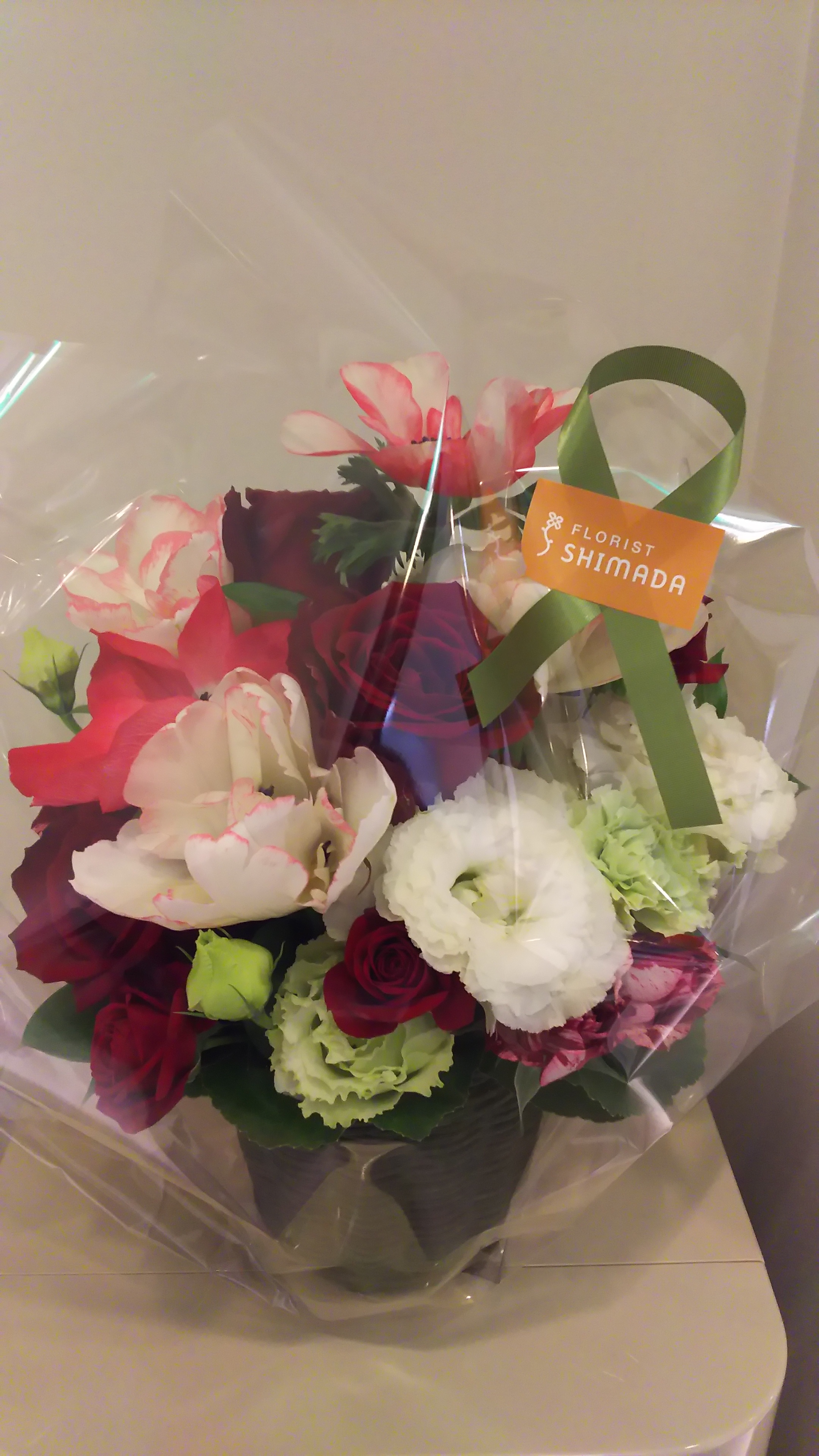 診療イスの増台リニューアルで、患者さんからお花を頂いちゃいました。 Yさんありがとうございました。 早速受付横に飾らせて頂きました。
