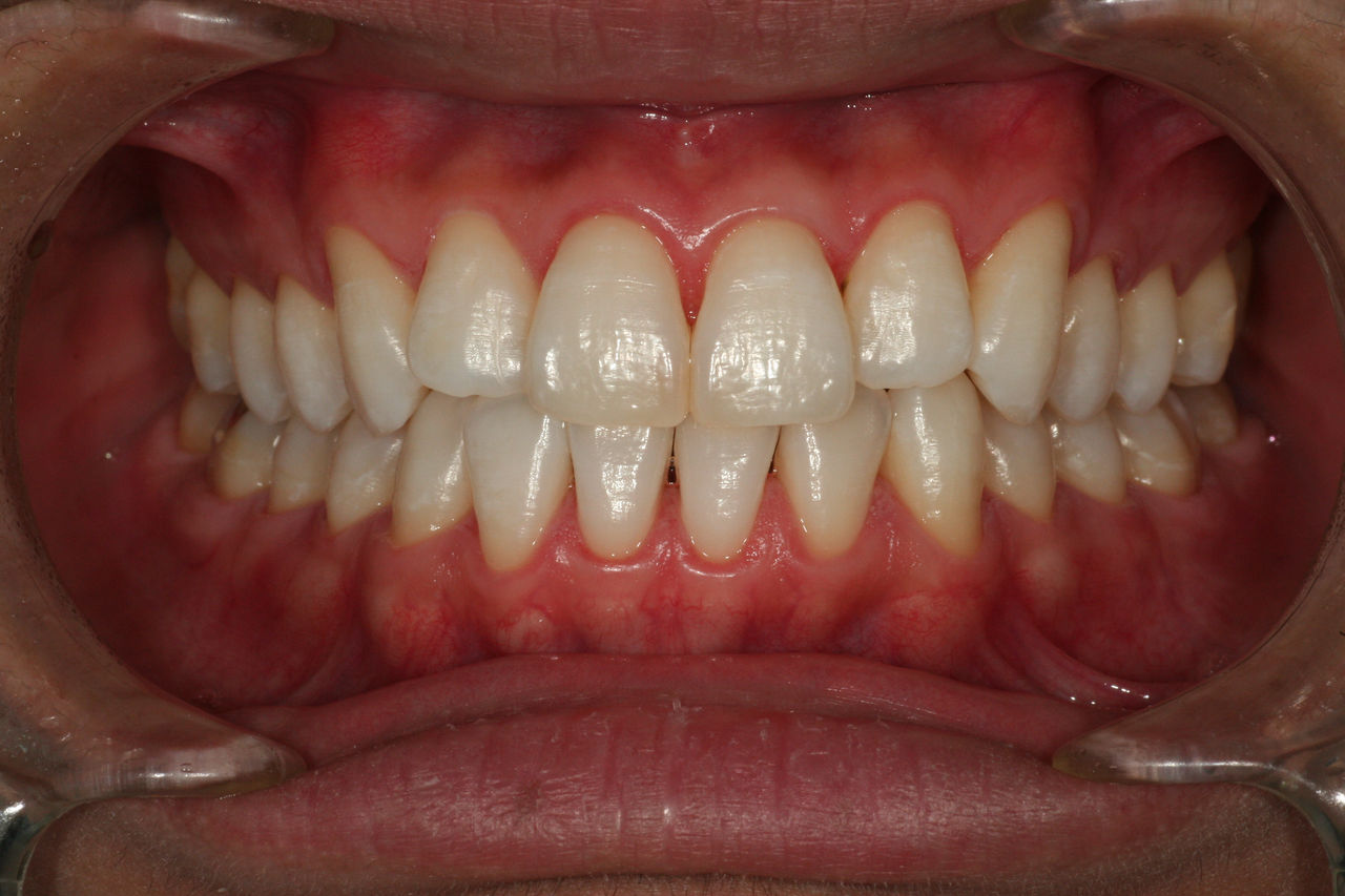 写真は初診時から、ホームホワイトニング上下2週間と、オフィスホワイトニング30分(2セット)を2日間で、最後に歯のトリートメントのリナメルを行った症例で、前歯には虫歯があったので、1箇所ホワイトニング後に色を合わせて白いプラスチックで詰めてあります。