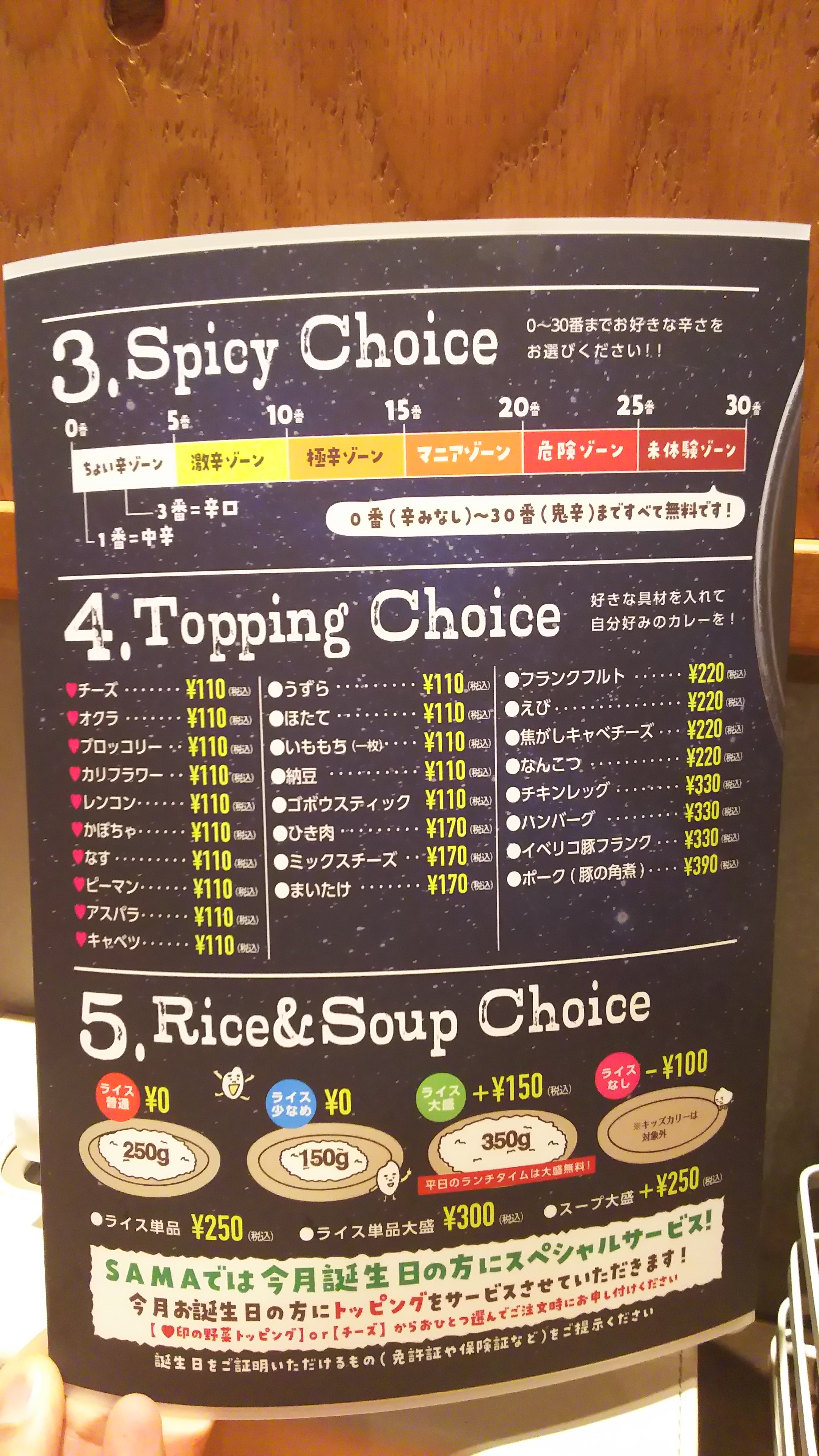 辛さを0~30から選んで、追加トッピングを選ぶ。