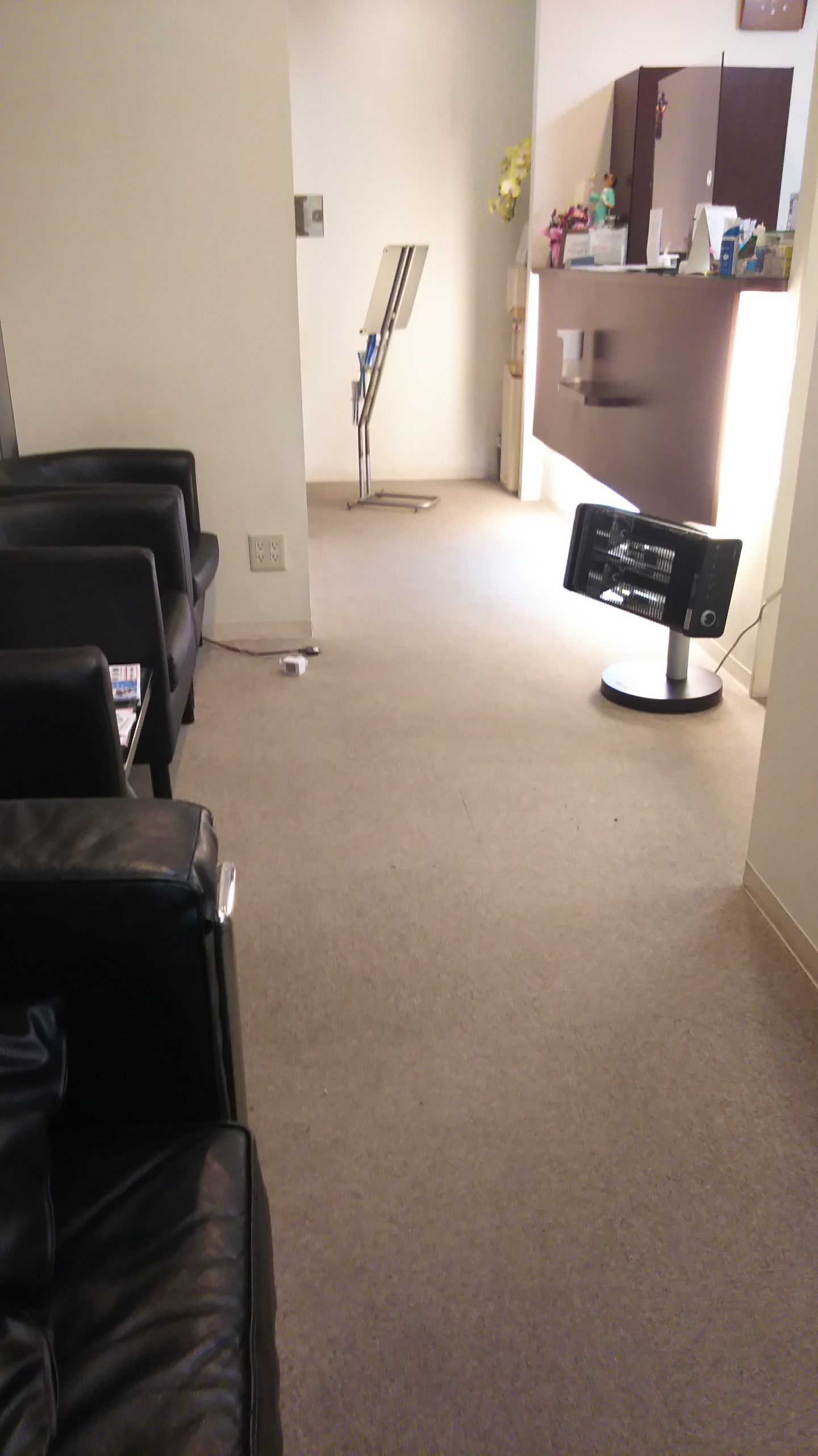 このドアの開放による寒さ対策として、待合室に遠赤外線の暖房機 セラムヒートを設置致しました。