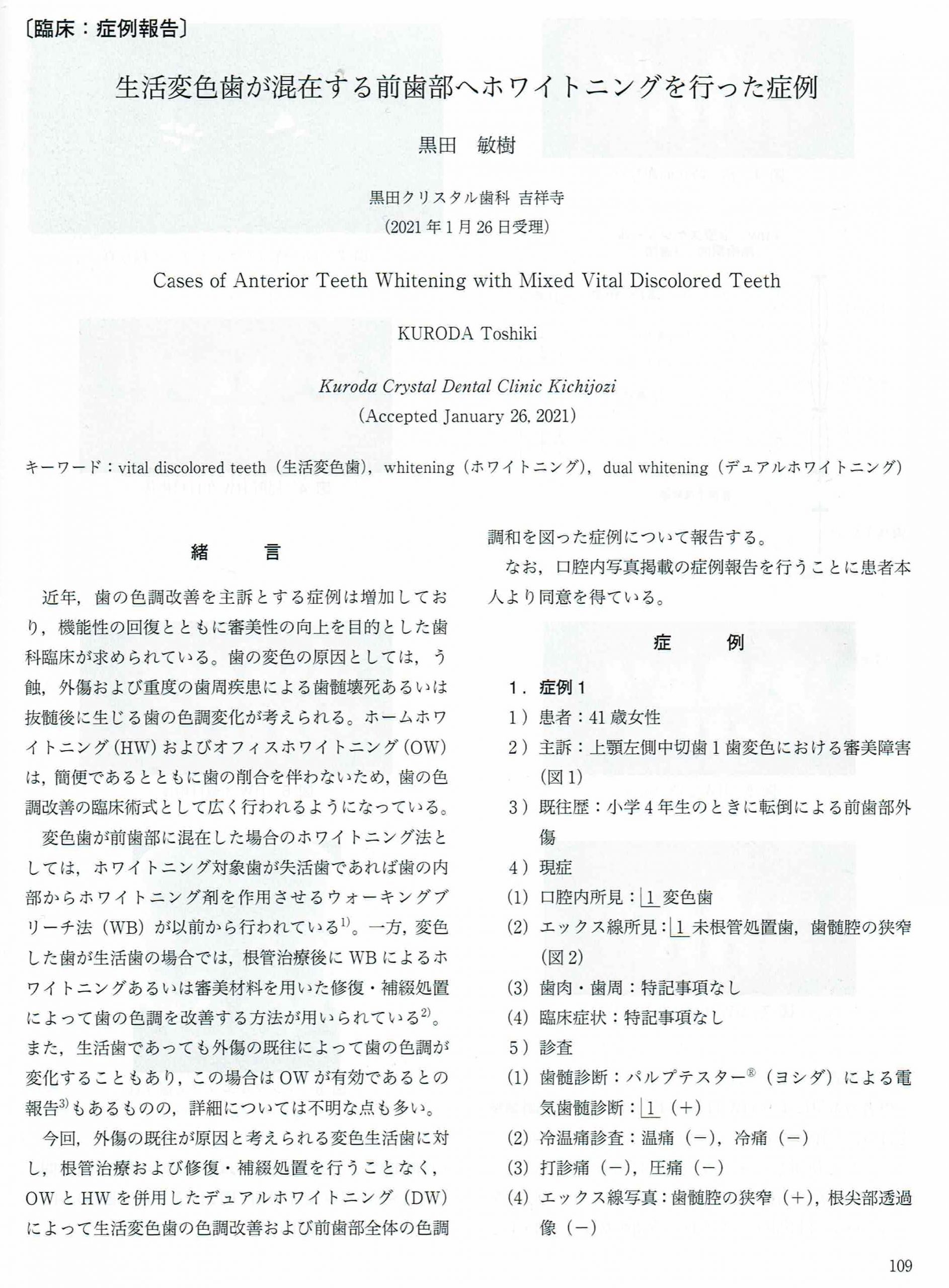 日本歯科審美学会誌 臨床論文 掲載 黒田クリスタル歯科 吉祥寺 ホワイトニング
