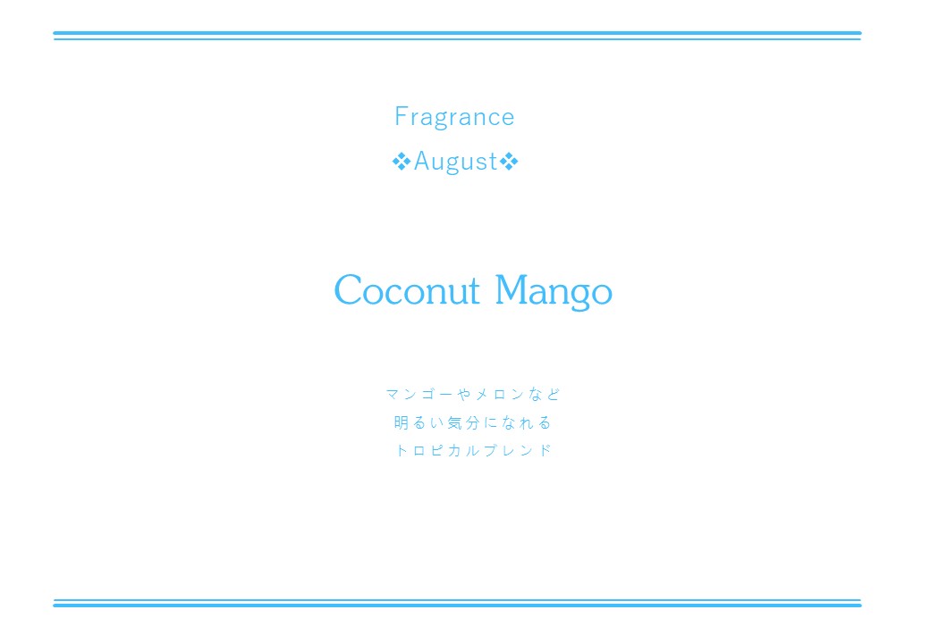 黒田クリスタル歯科 吉祥寺 8月 アロマ フレグランス Coconut Mango ココナッツマンゴー