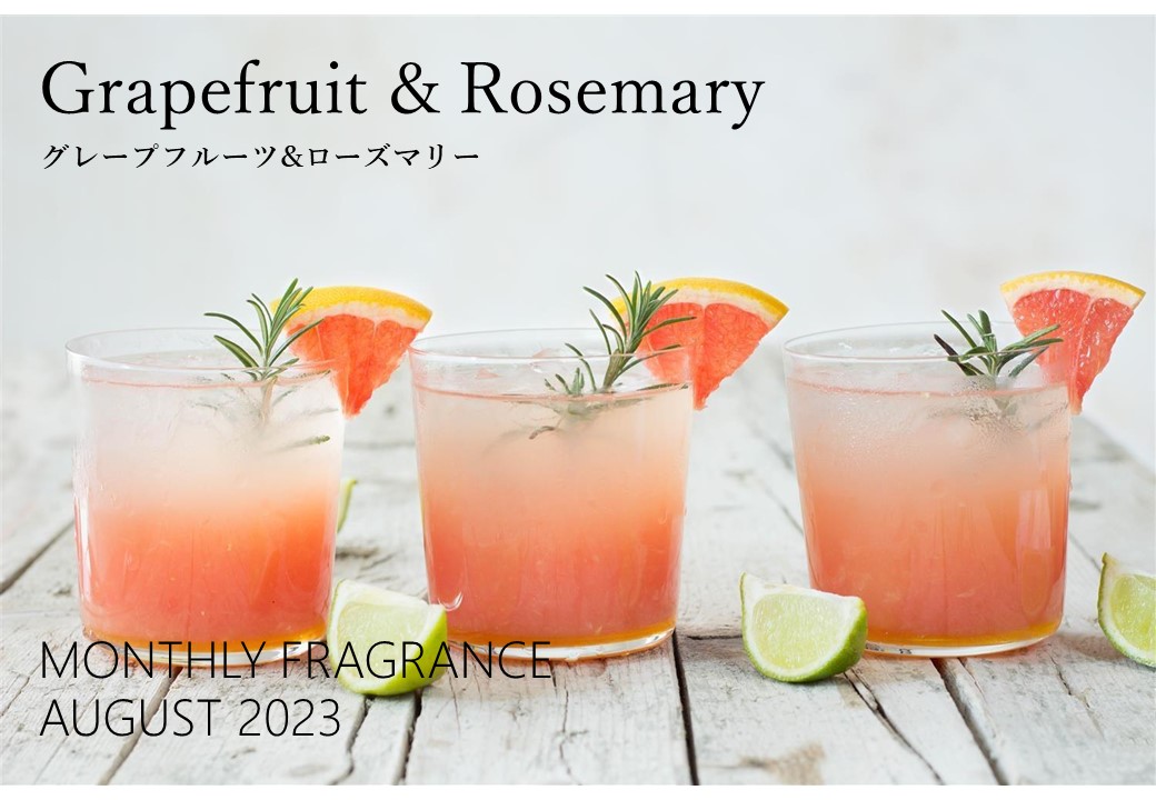 黒クリメンバー皆で選んだアロマ 2023年8 月のアロマ Grapefruit & Rosemary グレープフルーツ&ローズマリー 瑞々しいグレープフルーツと ローズマリー・ムスクを組み合わせた 爽快で心安らぐシトラスフレグランス 開放していたドアも閉じることができ、院内待合室に香る アロマ・フレグランスをお楽しみ頂ければ幸いです