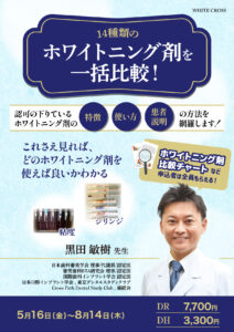 5月視聴配信開始の歯科医療従事者向けの、認可ホワイトニング全14種類の比較などのホワイトニングのWEBセミナー申込が解禁になりました。