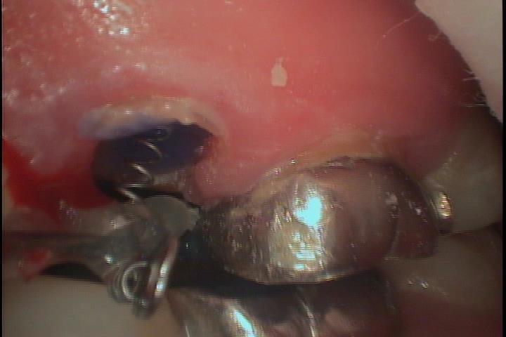 健康な歯の部分を歯肉の上に引っ張り出して、その根の治療、土台を作り、硬いセラミックで歯を覆い、歯を温存する治療方法です。