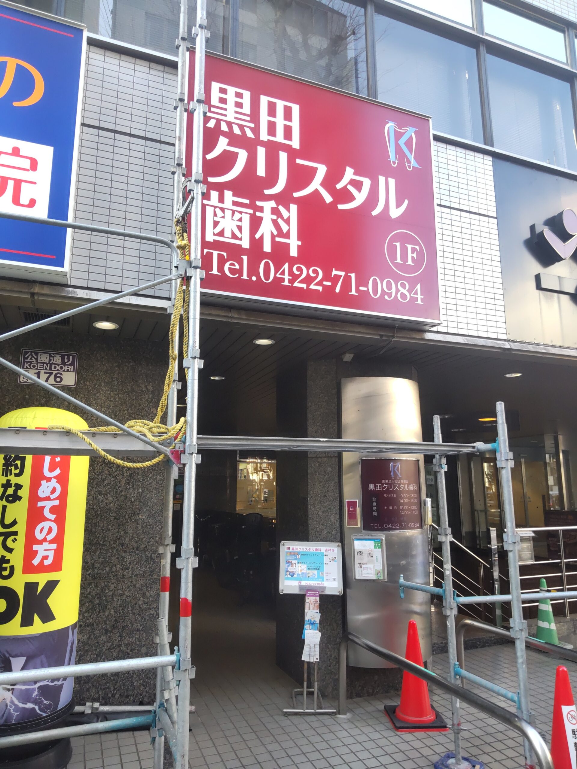 Web 予約 Tel : 0422-71-0984 Web予約 Tel:0422-71-0984 Top 診療案内 医院情報 院長とスタッフ紹介 医院内装・設備 診療の流れ 費用について アクセス・コンタクト 院長のメディア出演・活動実績 In English 医院からのお知らせ 院長ブログ 院長ブログ TOP ブログ クリスタルパークビル 外壁工事の為足場設置 2026年1月13日 【医院からのお知らせ, 黒田クリスタル歯科 吉祥寺】 クリスタルパークビル 外壁工事の為足場設置 黒田クリスタル歯科 吉祥寺の入っております、クリスタルパークビルの外壁工事の為、本日より足場設置が行われております。 黒田クリスタル歯科 吉祥寺は平常通り診療しております。 お気をつけてご来院下さい < 前の記事へ 最近の記事 クリスタルパークビル 外壁工事の為足場設置 黒田クリスタル歯科 吉祥寺 2026年1月 フレグランス パリス シック Paris Chic 2025 セミナー ウェビナー 学会 第36回 日本歯科審美学会学術大会 2025.12.12,13 日本歯科審美学会学術大会 理事会、学術大会出席につき院長不在 カテゴリ一覧 医院からのお知らせ 吉祥寺の話題 未分類 歯科の疑問 祭り 院長ブログ 黒クリ院長の休日 黒田クリスタル歯科 吉祥寺 月別 2026年1月 2025年12月 2025年11月 2025年10月 2025年9月 2025年8月 全月別 News 医院からのお知らせ 2026.01.13 クリスタルパークビル 外壁工事の為足場設置 2025.12.31 黒田クリスタル歯科 吉祥寺 2026年1月 フレグランス パリス シック Paris Chic 2025.12.11 2025.12.12,13 日本歯科審美学会学術大会 理事会、学術大会出席につき院長不在 2025.12.02 年末年始の休診日について 2025.11.29 黒田クリスタル歯科 吉祥寺 2025年12月 フレグランス フレグラント マグノリア Fragrant Magnolia 院長ブログ: 2025.12.31 2025 セミナー ウェビナー 学会 2025.12.15 第36回 日本歯科審美学会学術大会 2025.11.17 院長セミナー講演 日本歯科ボツリヌス協会 認定医取得講座 2025.10.22 東京歯科大学クラウンブリッジ補綴学講座 講演演者 黒田クリスタル歯科院長 BTAテクニック® 2025.09.08 日本アンチエイジング歯科学会 20周年