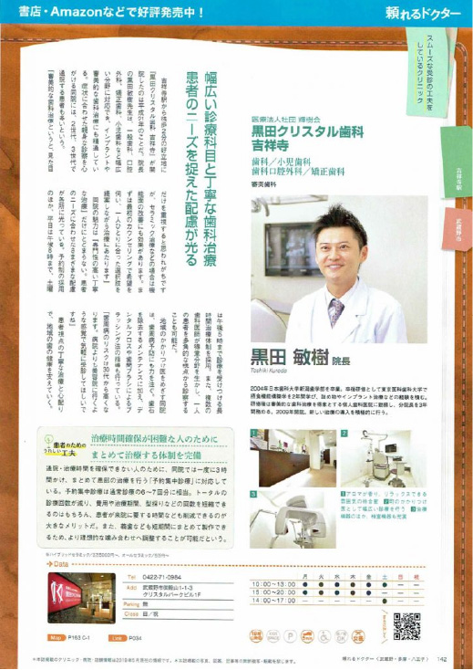 歯科界での業界紙において、黒田クリスタル歯科 吉祥寺 が、【今月の素敵な歯科医院】で紹介されました。
