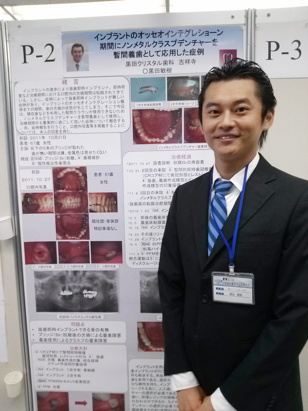 テーマは「インプラントのオッセオインテグレーション期間にノンメタルクラスプデンチャーを暫間義歯として応用した症例」